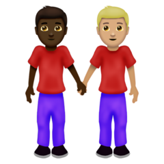 | Значення | чоловіки, що тримаються за руки: темний тон шкіри і помірно світлий тон шкіри |