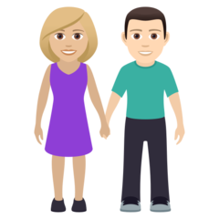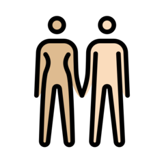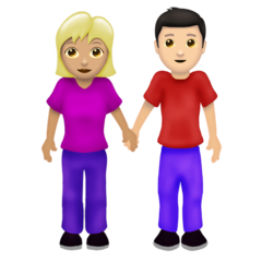 | Значення | жінка й чоловік, що тримаються за руки: помірно світлий тон шкіри і світлий тон шкіри |