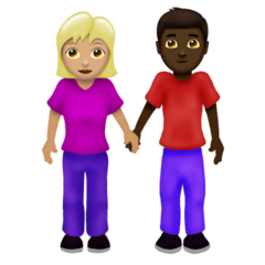 | Значення | жінка й чоловік, що тримаються за руки: помірно світлий тон шкіри і темний тон шкіри |