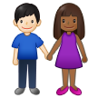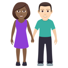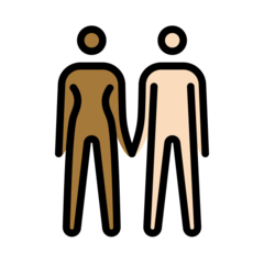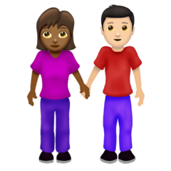 | Значення | жінка й чоловік, що тримаються за руки: помірно темний тон шкіри і світлий тон шкіри |